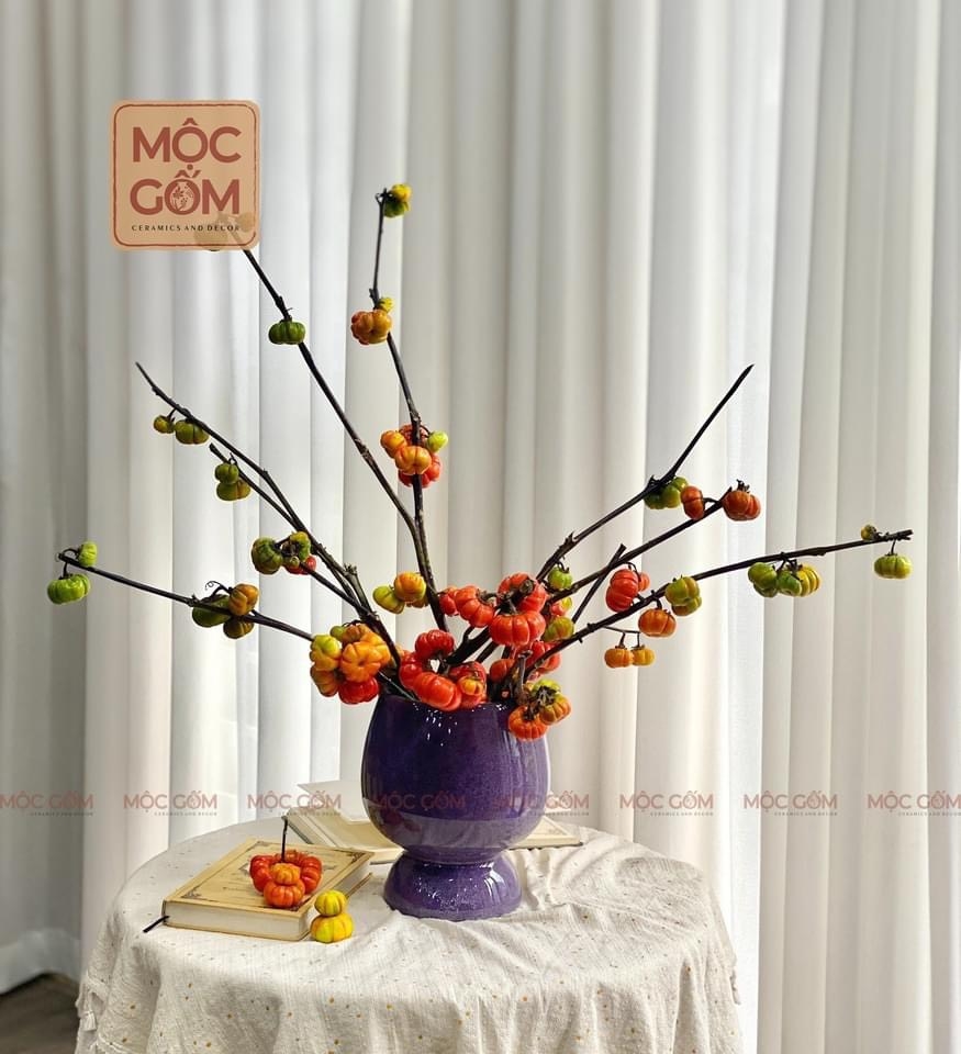 Bình gốm - dáng ly size trung - vân đá màu tím