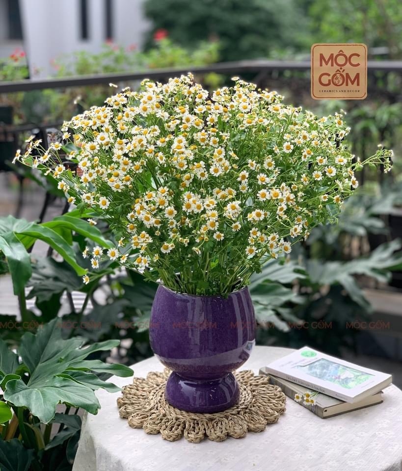 Bình gốm - dáng ly size trung - vân đá màu tím